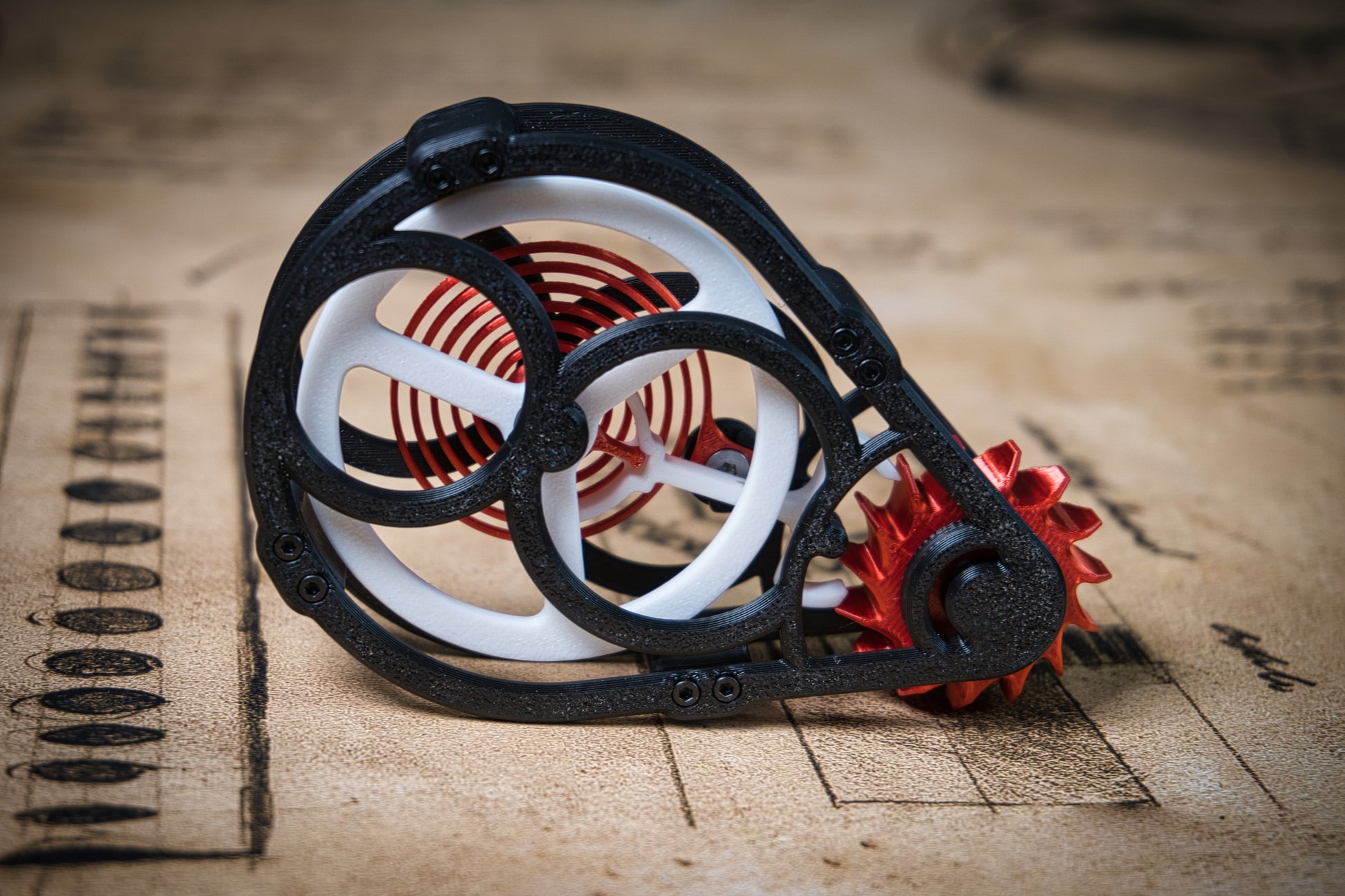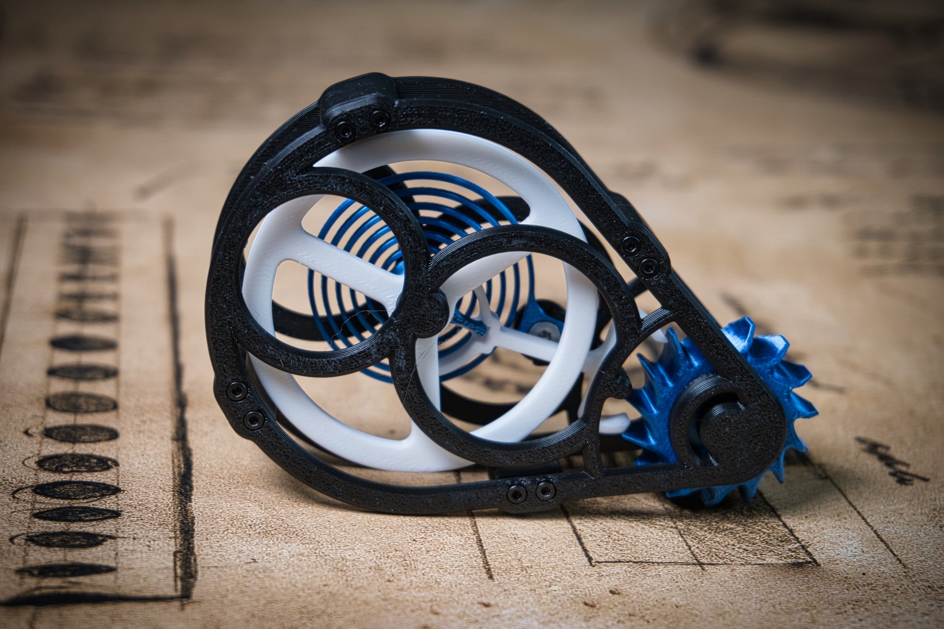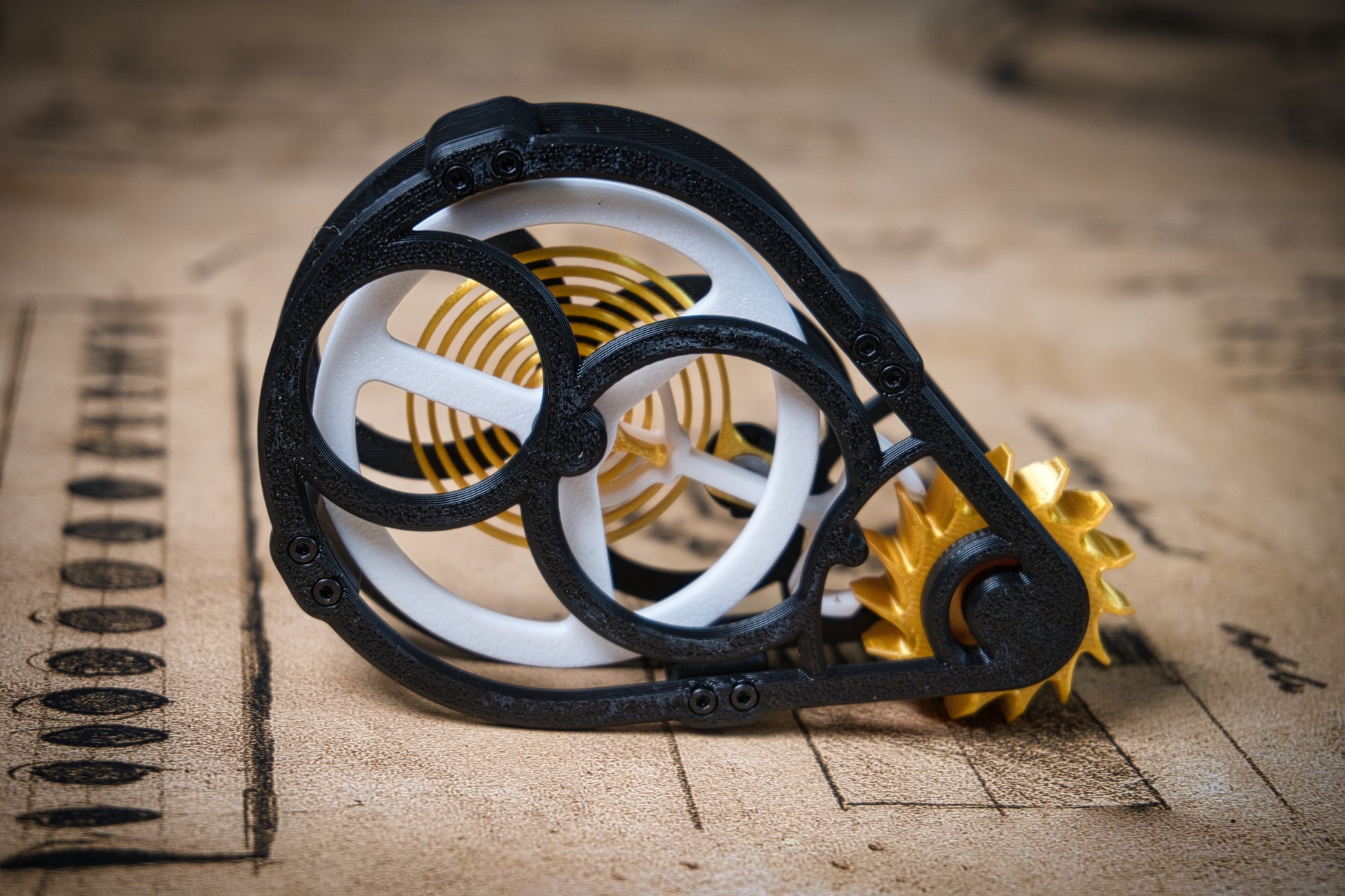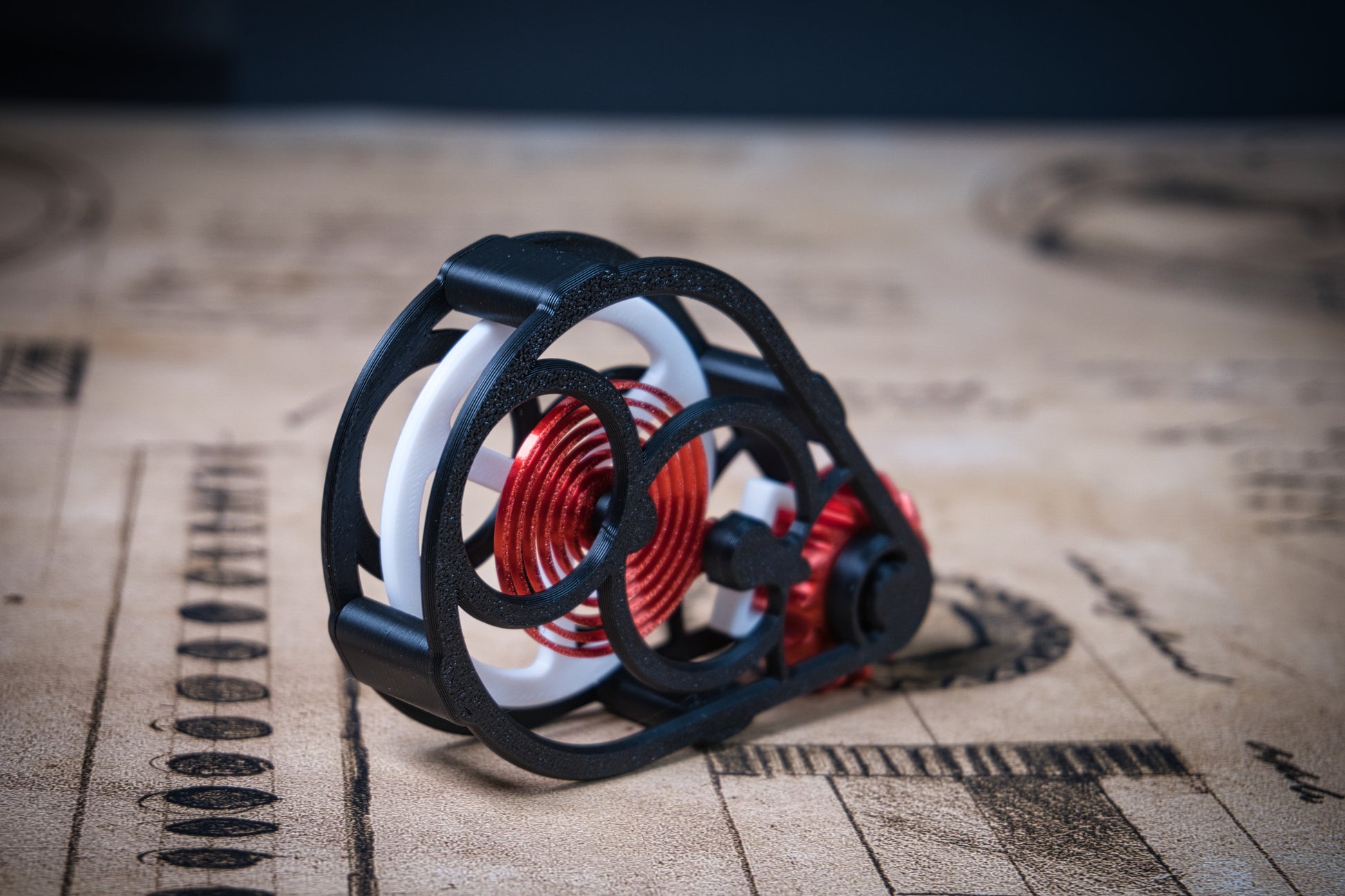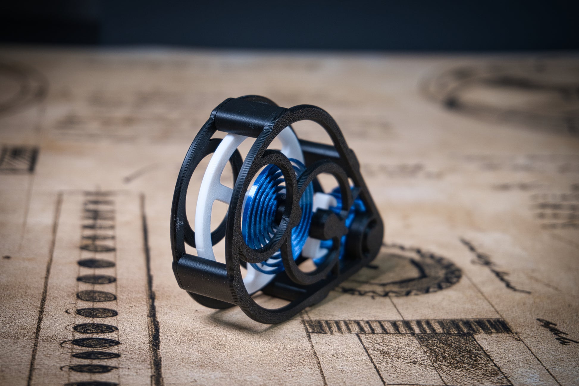 This fidget toy uses our signature printed watch escapement. With a rhythmic clicking effect, this fidget provides fantastic tactile and auditory feedback. Available in vibrant color combinations, it’s perfect for desk displays, stress relief, or curious minds fascinated by motion and mechanics.